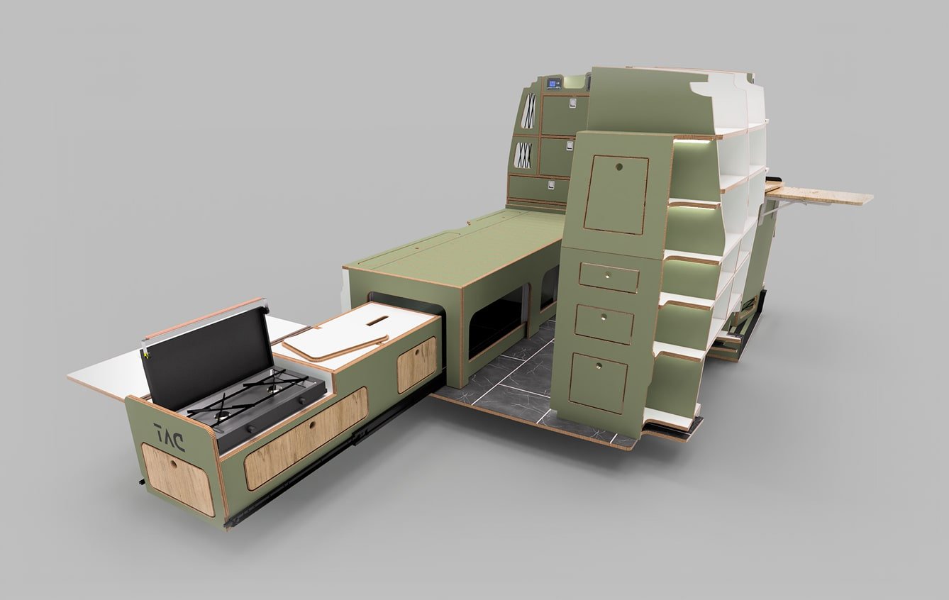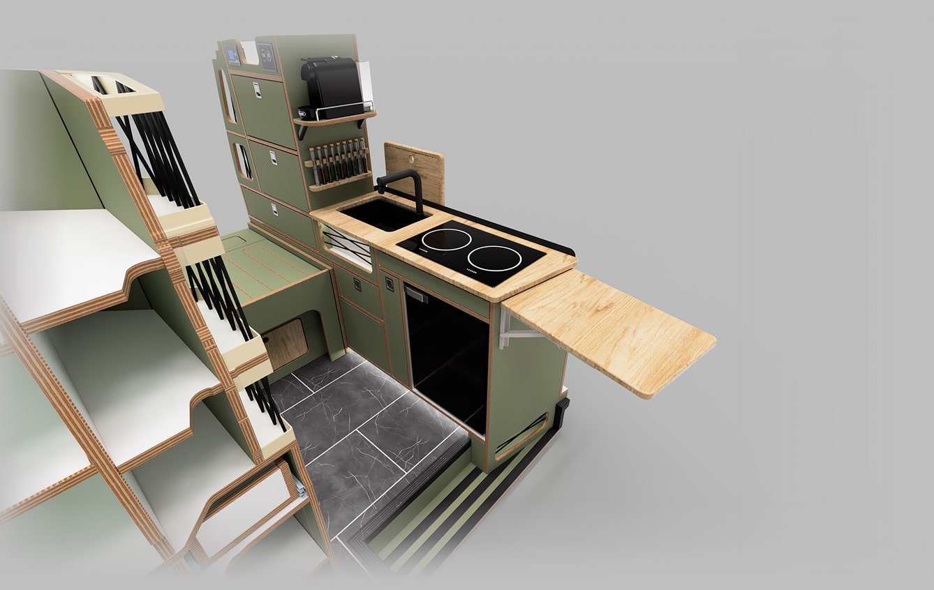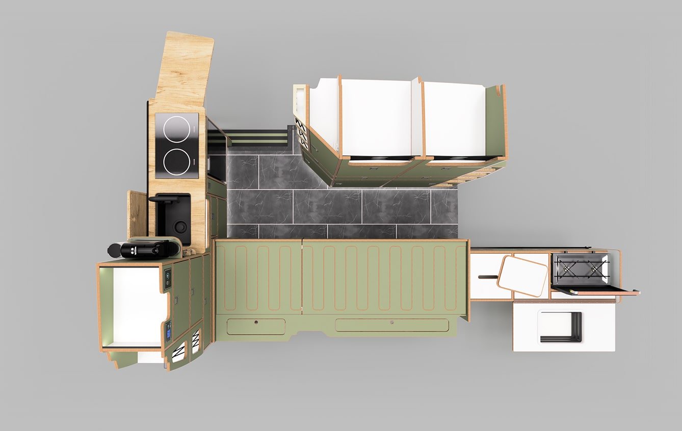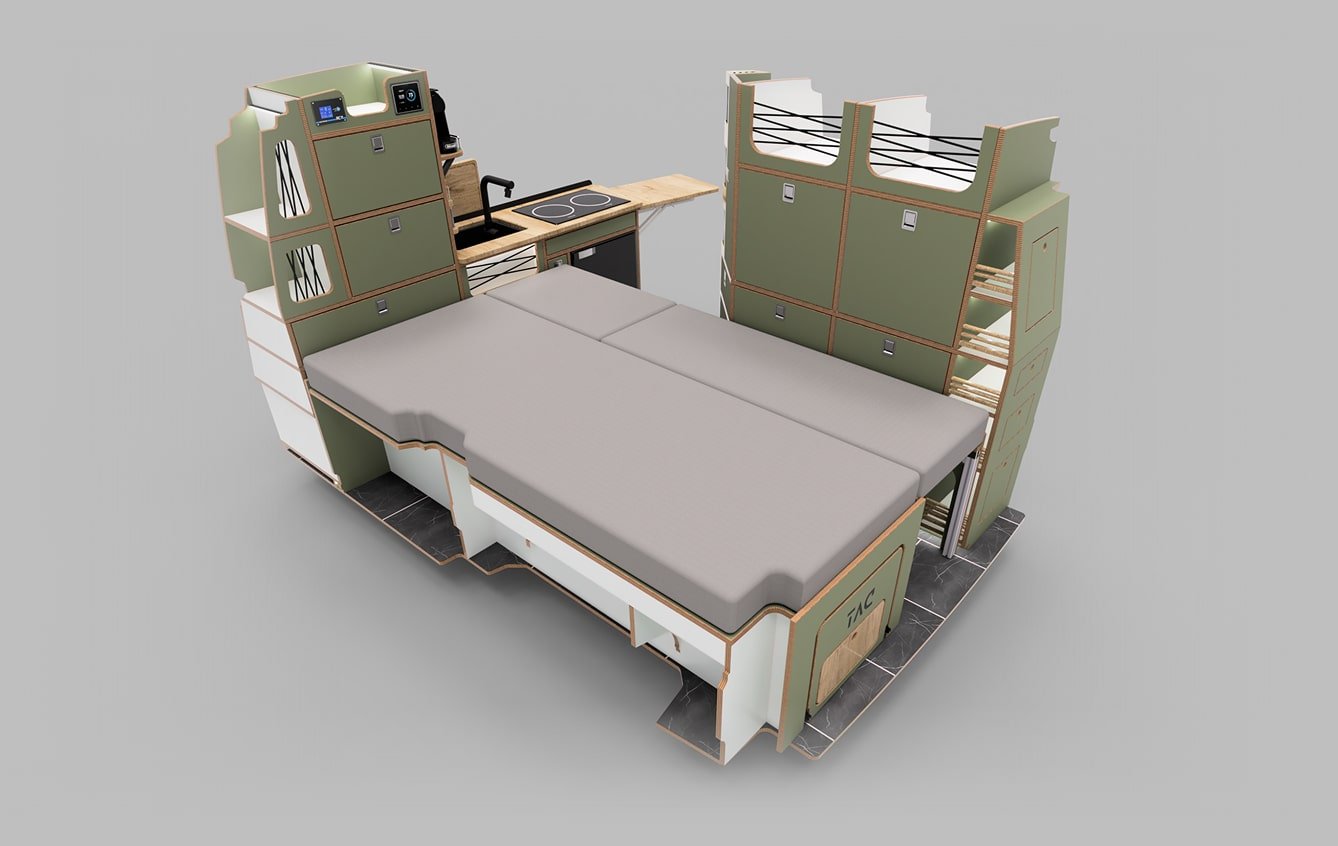 Unsere Module werden komplett in Eigenfertigung entwickelt – modular, stabil und perfekt an die Fahrzeugkontur angepasst. Jedes Element ist so konstruiert, dass es Platz spart und gleichzeitig maximalen Komfort bietet.